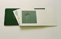 中程にテーブルをしつらえた、いつもとは違う雰囲気の画廊内で、手にとっ