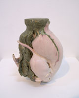 開催日時2010 年7月24日(土)〜8月14日(土) Keiko Masumoto 展覧会について桝本佳子は1982年に兵庫県に生まれる。2007年京都市立芸術大学大学院修士課程陶磁器専攻修了。2008年東京ミッドタウンアワード アートコンペで準グランプリを、2009年トーキョーワンダーウォール/立体・インスタレーション部門で大賞を受賞する。2010年には「現代工芸への視点『装飾の力』」/東京国立近代美術館工芸館に参加し、今後益々その活躍が期待されている若手作家です。Gallery Jinでは初の個展となる本展では、壺等大小約10点の陶作品を展示予定。 時にぎょっとさせられるような桝本作品の面白さは、オブジェと器の組み合わせの妙にあるようです。大胆なモチーフと、なじみのある焼き物のマチエールが、拮抗しながら共犯関係を結び、ダイナミックなフォルムを生み出します。「工芸や美術の枠組みに縛られず、率直に感じとれるような作品を作っていきたい」と言う作家。その極めて日本的なモチーフから連想させられる物語性やユーモア溢れる造形美を、是非、お楽しみ下さい! Keiko Masumoto was born in Hyogo in 1982. Received M.A. in pottery from Kyoto City University of Art. Received Runner-up Prize at Tokyo Midtown Award Art Competition in 2008, Grand prix in Tokyo Wonder Wall in 2009. In 2010, attended in the exhibition; the Power of Decoration /Craft at the Gallery of The National Museum of Modern Art, Tokyo. This is her first solo exhibition at this gallery and about 10 ceramic works will be exhibited.