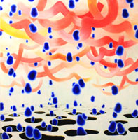 えんどうあやこ Ayako Endo(絵画) 角田 優 Yu Kadota〈映像・インスタレーションによる体感芸術〉 笹岡由梨子 Yuriko Sasaoka〈映像・アニメーション〉 中山晃子 Akiko Nakayama 〈インスタレーション・写真〉 堀田彩乃 Ayano Hotta〈絵画・版画〉 〈作家コメント〉 えんどうあやこ:目ではみることができない雰囲気、意識、気配を描いています。小さな豆のような生き物が時々登場します。 小笠原雄介:誰も見たことないものを生み出すことなんてことはできない。何故なら我々は“学ぶ”という行為を経なければ、なにかを生み出すことが出来ないからだ。僕が鉛筆デッサンを描いている理由はそこにある。 角田優:見えないものを可視化する、見えているものを不可視化するという事を表現の軸として活動しています。見えないもの、現象を見たいと思う欲求や見えているもの、現象が見えなくなってしまう不安感をきっかけに、作品を体感する中で生まれる想像が新たな体験になればと考えています。 笹岡由梨子:展示するアニメーション作品の「ホルモンズ」とは、いわゆるアイドルで力士・まもっちゃん・じじいの三人のグループです。36CHはミュージックステーションのような番組です。 中山晃子:形あるものは常に移り変わる。「生の姿」というのは、無から有、有から無への引力による力の姿である。それは螺旋状に上昇しているが、意思や欲、外的要因が負荷となり、いびつに捻り上がる不安定な姿である。捻り上がる力がピークに達したとき、均衡を保った一瞬の安らぎがあり、安定を得て生となる。留めてはおけない一瞬の雫に、渦に、色を託し、生命を垣間見る。 堀田彩乃:わたしのこれまでの出来事、その時の気持ちをもとに形や色にかえて作りました。