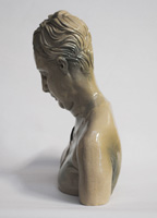「検索をすれば簡単にあらゆる物事のぼんやりとした正面像を得る事が可能な昨今、かえって私たちは観るという事に鈍感になっているのではないでしょうか。観るという行為を再認識するために、インターネットにより入手した画像から人物だけを抜き取り背景の無いレリーフ(絶対的な正面像も、彫刻としてボリュームもない不安定な立体物)を制作しました。」(額賀苑子)